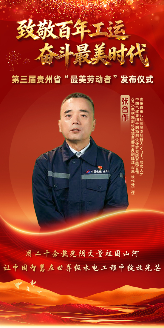 贵阳院水电水利工程院职工张合作凭借在高原水电建设一线二十余载的坚守与创新,从全省各行各业奋斗者中脱颖而出,被授予第三届贵州省“最美劳动者”称号!