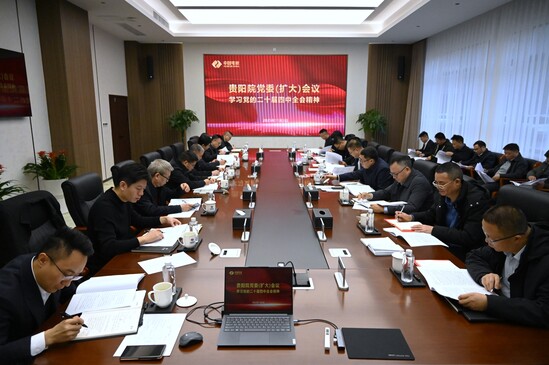 11月3日,贵阳院党委召开党委扩大会议,传达学习贯彻习近平总书记在党的二十届四中全会上的重要讲话和会议精神,研究贯彻落实措施。院党委书记、董事长武建学主持会议并领学,院领导班子成员参加。