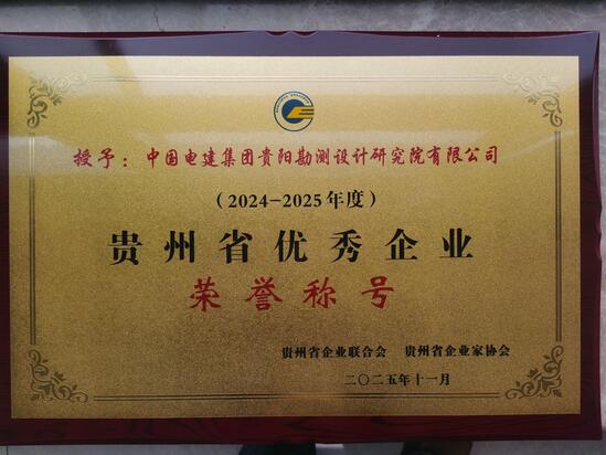 近日,贵州省企业联合会与贵州省企业家协会联合发布《关于表扬2024-2025年度贵州省优秀企业的通报》,贵阳院凭借在技术创新、工程品质、绿色低碳、社会责任及国际化经营等领域的卓越表现,从百余家参评企业中脱颖而出,成功获评“2024-2025年度贵州省优秀企业”。